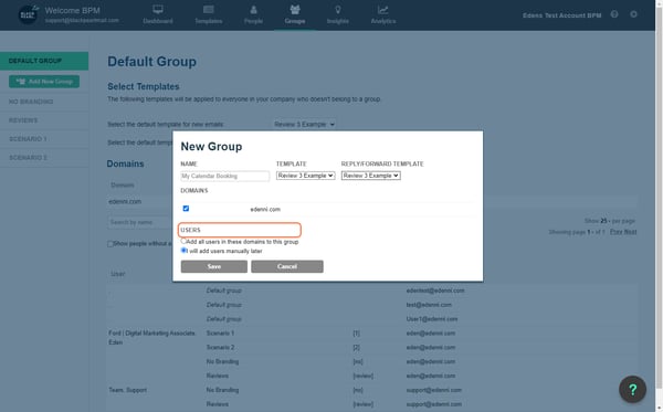10. Once the templates have been created for each staff member with an individual calendar link, go to Groups