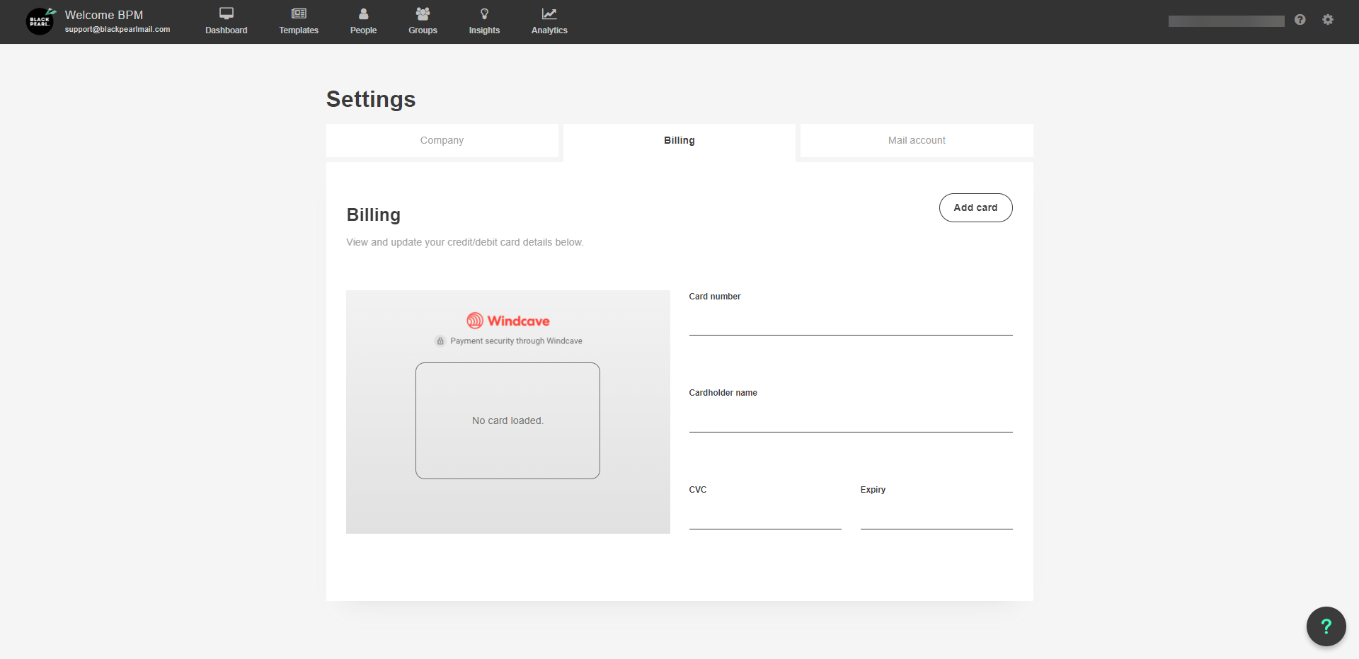 To Add or Update you payment details with us you will need to have an admin login to your Black Pearl Mail account. If you do not have this, please contact support@pearldiver.io