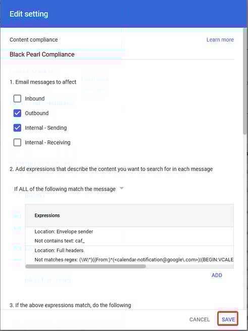 STEP 3 – Update the Black Pearl Mail Compliance settings