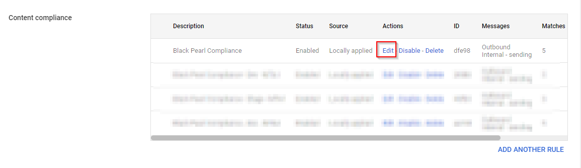 3) Scroll down to the Black Pearl Mail content compliance rule and click