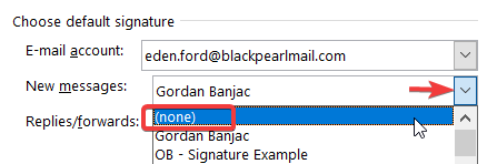 Or you can change the default signature to (none) for both New messages and Replies/forwards.
