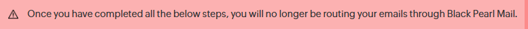 Once you have completed all the above steps, you will no longer be routing through Black Pearl Mail. We strongly recommend you send a test email to a personal email address to ensure mail is functioning correctly. Please inform support@blackpearlmail.com so they can suspend your Black Pearl Mail account.