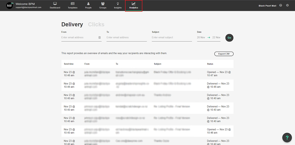 - Status - this field gives you an indication of whether the email was Delivered, Opened, or Failed.