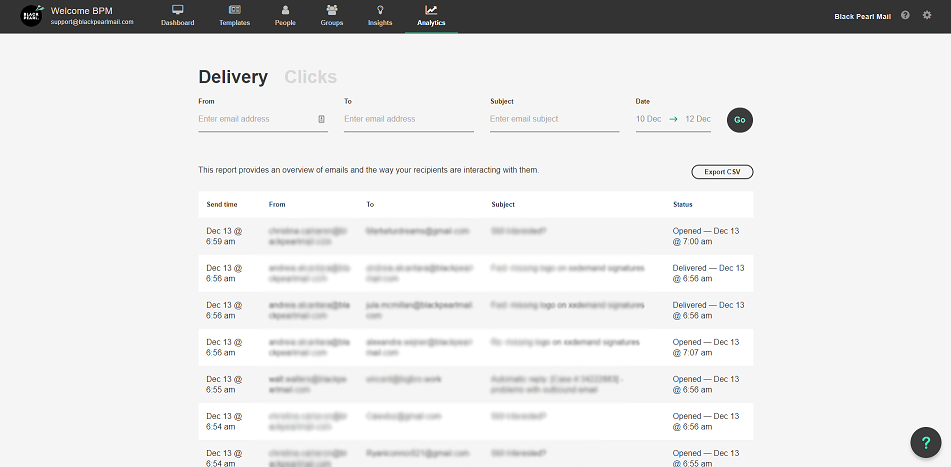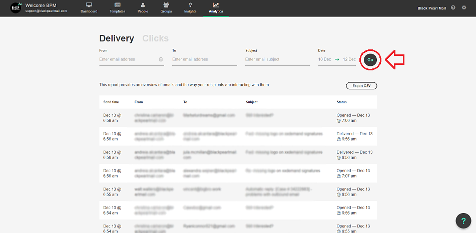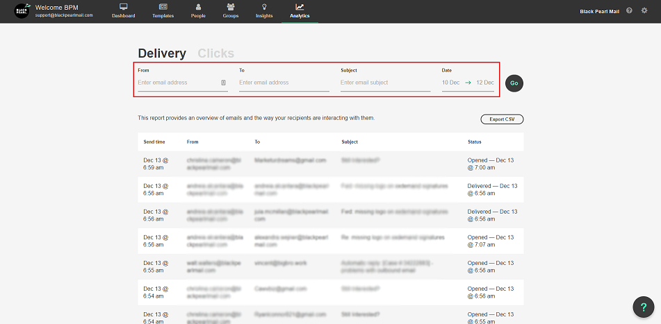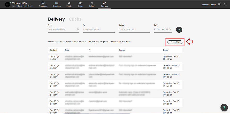 - You can also export the results by clicking the “Export CSV” button which will download a local copy in a . CSV format.