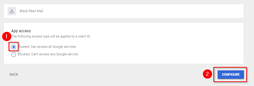 https://admin.blackpearlmail.com with a Google account, occasionally Google will throw back the error "Error 400: Admin_policy_enforced". If this occurs, we need to go and add Black Pearl Mail to the list of trusted third party applications in your Google admin console.