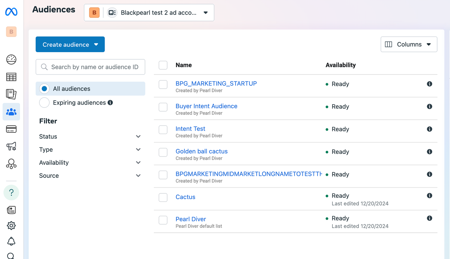 support@blackpearl.com that you have an "Intent Audience" already and have now completed setting up your Meta account and we can begin automatically updating your Custom Audience with the same name as your Intent Audience in your Meta ad account.