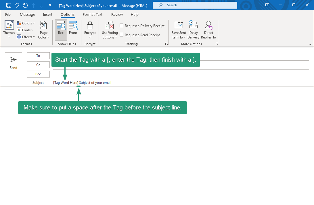 For the Tag feature to work correctly, there will need to be a space added after the Tag, prior to adding the email subject itself.